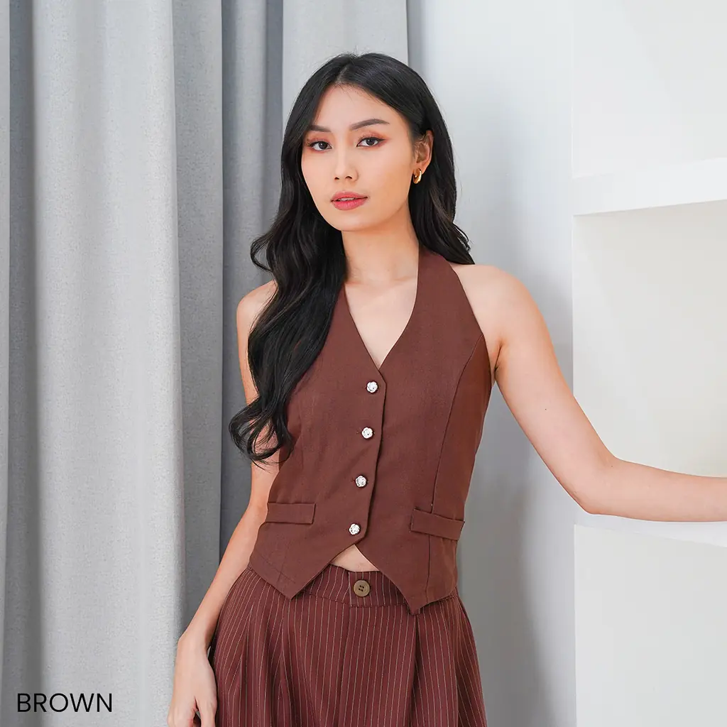 Vest Wanita Halter Korean Style Semiwool Atasan Wanita Elegant Casual Top Wanita